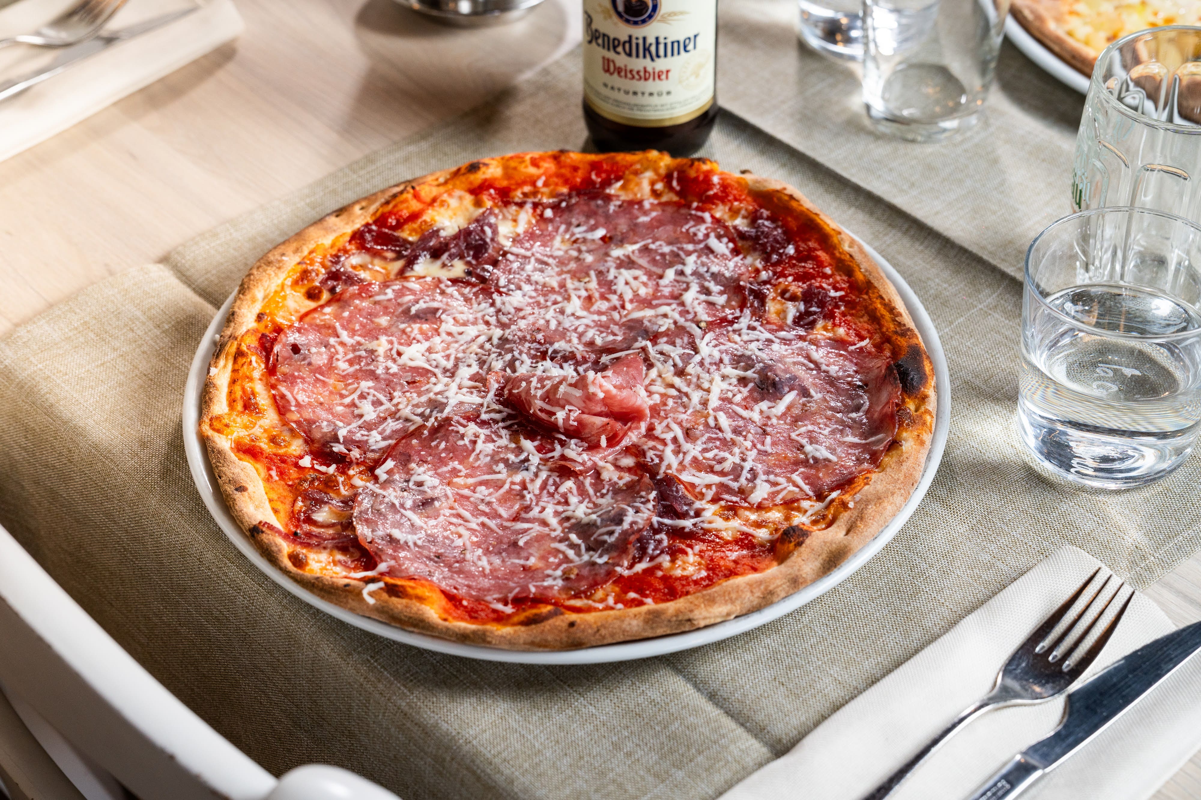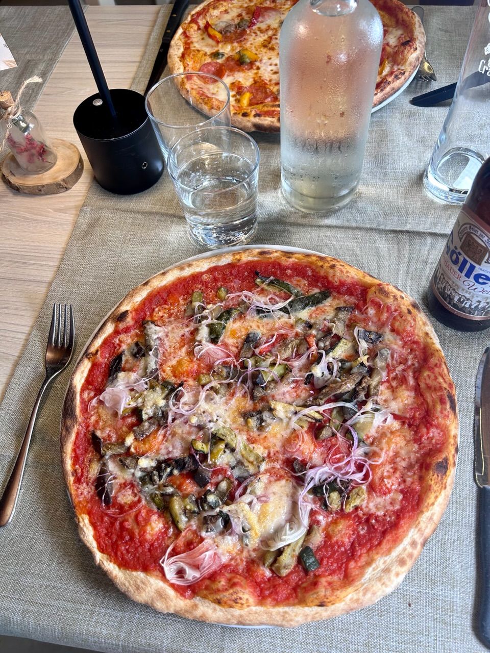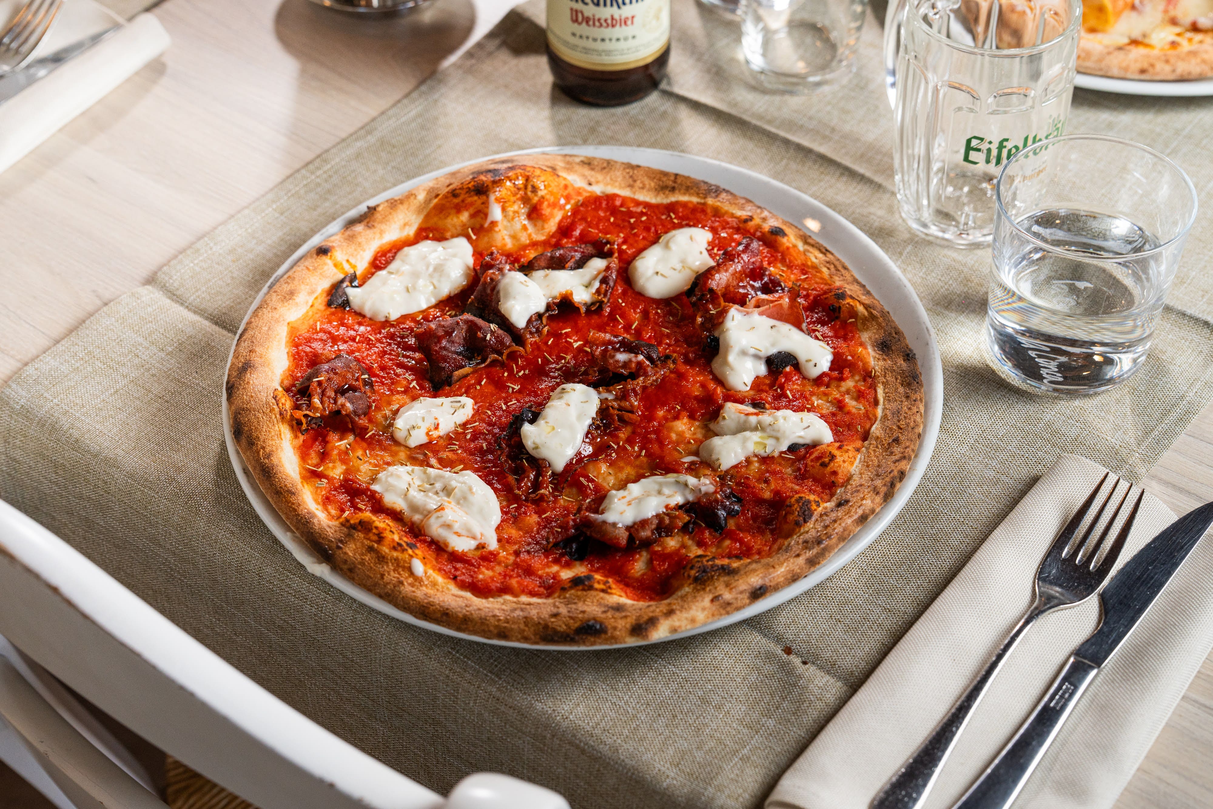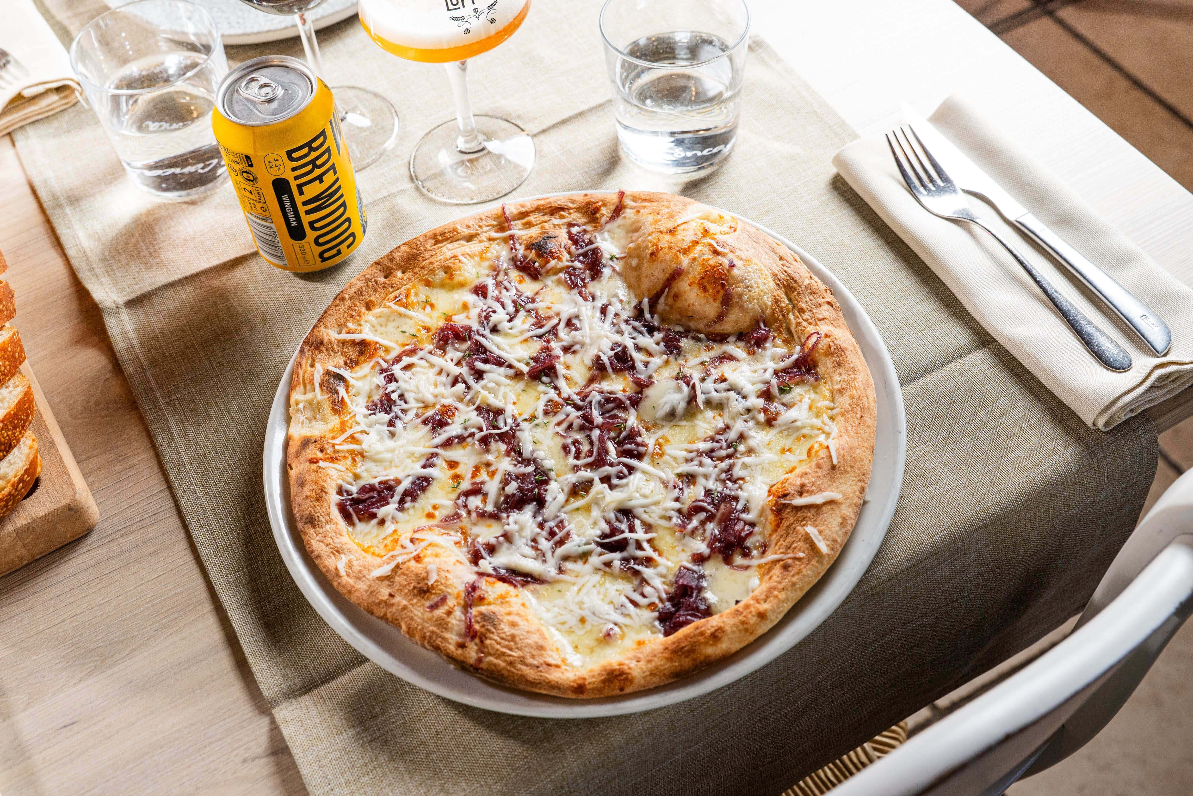 POMODORO, MOZZARELLA, SOPRESSA DI SCHIO SENZ’AGLIO, CIPOLLA ROSSA CARAMELLATA E RICOTTA AFFUMICATA 10.8€