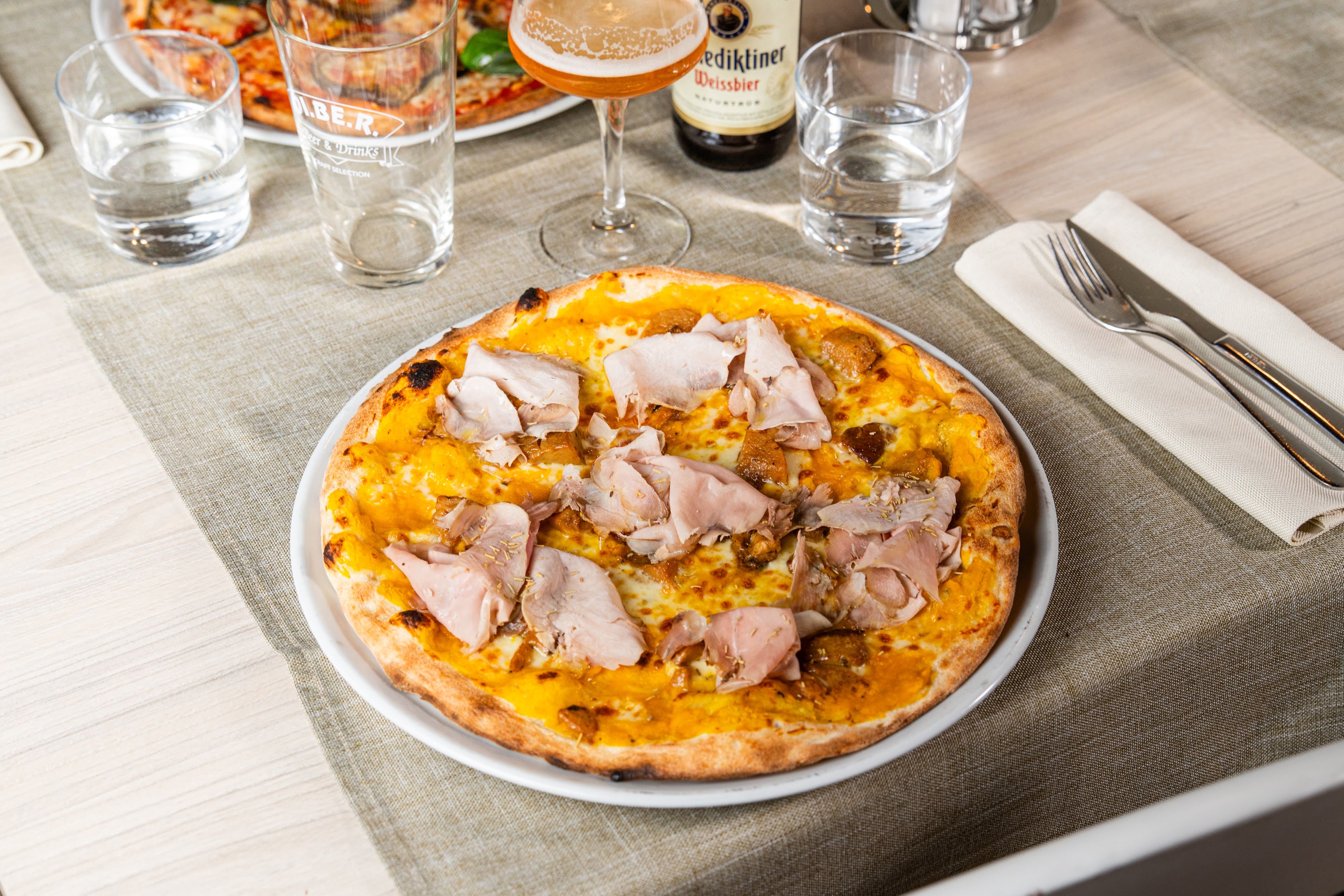 CREMA DI ZUCCA, MOZZARELLA, PORCINI E PORCHETTA 12.8€
