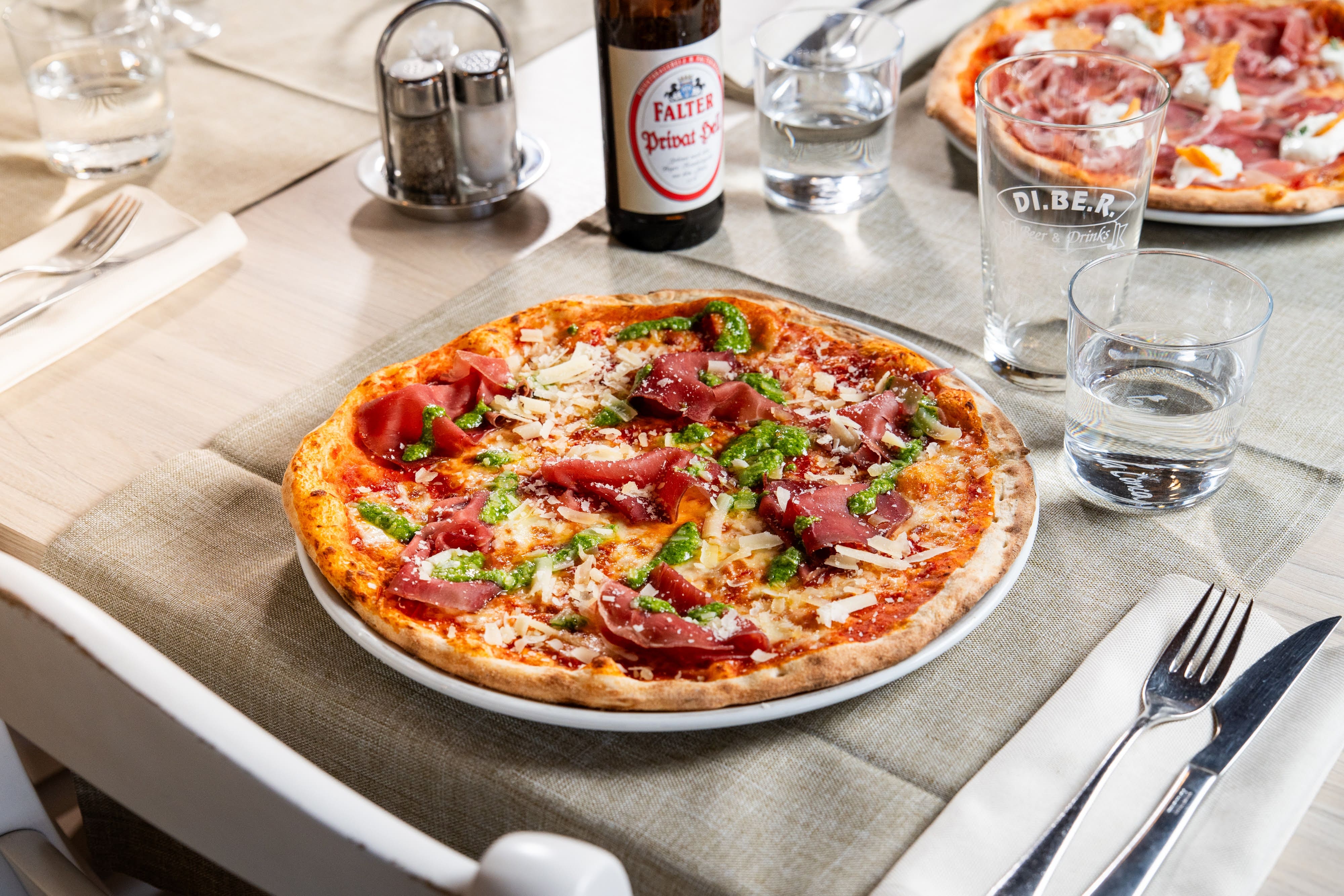POMODORO, MOZZARELLA, BRESAOLA IGP, PESTO DI RUCOLA FATTO IN CASA E SCAGLIE DI GRANA 13.8€